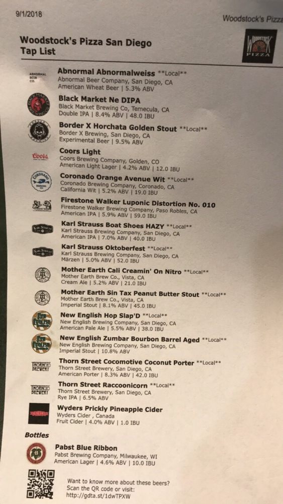 Woodstock's Pizza SDSU is a popular pizza joint located at 6145 El Cajon Blvd in San Diego, CA. This casual eatery offers a variety of pizza options including gluten-free and vegetarian choices. The menu features delicious vegan and vegetarian options, making it a great spot for those with dietary restrictions. With amenities like delivery, takeout, outdoor seating, and free Wi-Fi, Woodstock's Pizza SDSU caters to a wide range of diners. The restaurant also offers catering services, making it a convenient choice for group gatherings. Additionally, they have happy hour specials, beer and wine options, and even a military discount. Whether you're looking for a quick lunch or a family dinner, Woodstock's Pizza SDSU is a must-visit spot for pizza lovers in San Diego.
